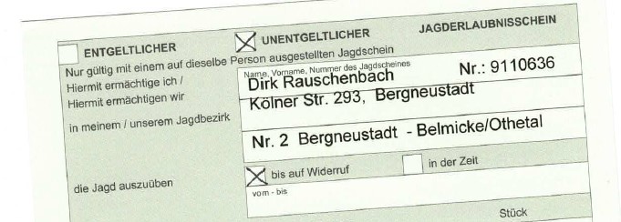 der neue Jagderlaubnisschein |