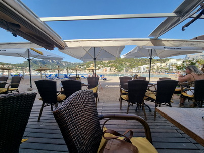 Das Es Reco Beach Restaurant in Port Soller Mallorca ist eine freundliche, entspannte Strandbar mit fantastischem Essen und großartigem Blick auf das Meer | Platja d'en Repic s/n, 07108 Port de Sóller, Illes Balears, Spanien |