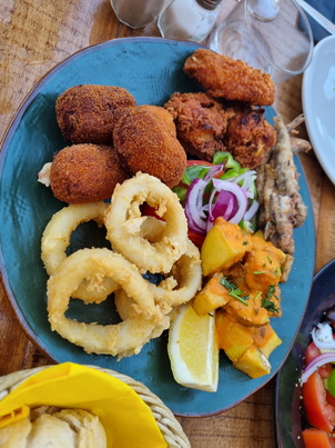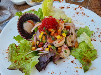 Restaurant Es Recó Fischplatte | Restaurant Es Recó Sorbet Zitrone + Mango |