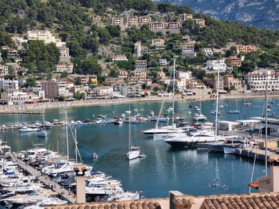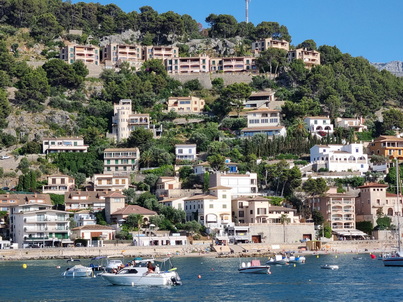 Soller Häuser an Hang mit Blick auf die Bucht