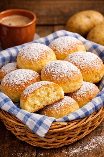 gekochten Kartoffeln im Teig aus, die ihnen eine besonders feuchte,