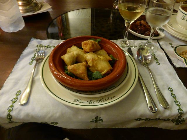 Rabat Hotel Riad Dar el Kebira Dinner Tajine | Rabat Hotel Riad Dar el Kebira Samosa |