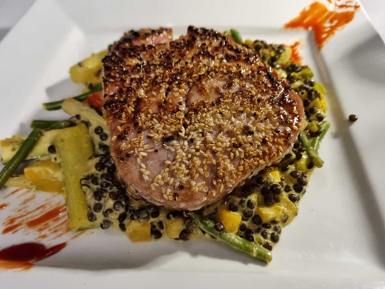 Michas Momente Bergneustadt Fischrestaurant Thunfisch mit ohne Spargel | Michas Momente Bergneustadt wachtelschenkel an Kürbis Pflaume |