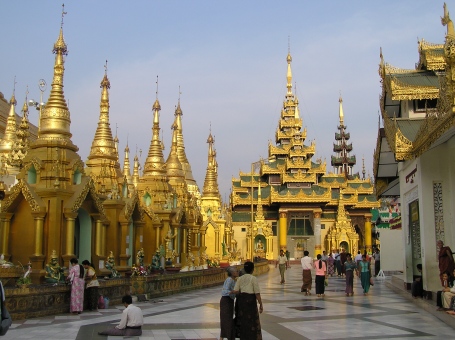 Im Hintergrund einer der verschiedenen Tazaung offenen Versammlungshallen mit heiligen
