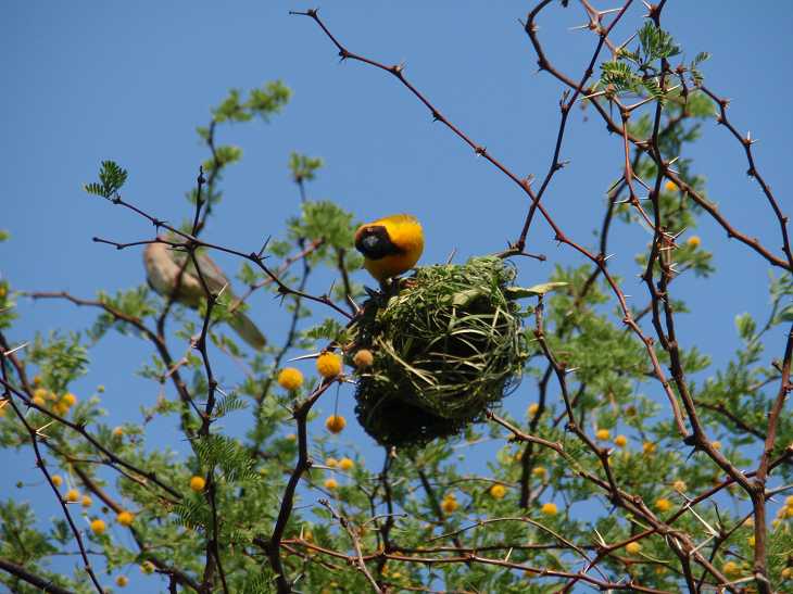 Webervogel im Nestbau | Kameldornakazie |