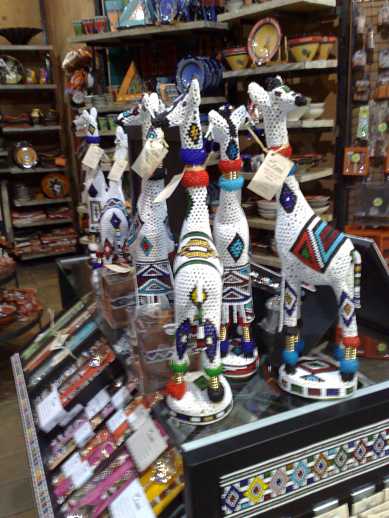 Out of Africa bietet eine Auswahl an afrikanischer Kunst, Kunsthandwerk und Souvenirs, die die Essenz und den Geist unserer afrikanischen Tierwelt und unseres Erbes einfangen. Dazu gehören unter anderem eine Kollektion handgeschnitzter Straußeneier, Zebra- und Springbockfelle in verschiedenen Kategorien, wie Kissen und Handtaschen, prächtige Bronzefiguren sowie ein umfassendes Angebot an authentischem afrikanischem Schmuck und Accessoires, Haushaltswaren und Kleidung.