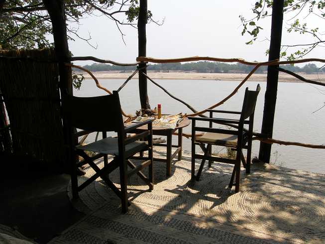 der Luangwa-Zuflüsse. Die Aussicht vom Camp ist geradezu phantastisch.