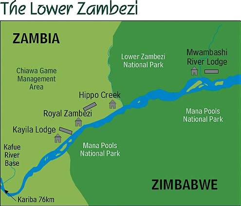 Entlang des Kafue River geht es durch eine wildreiche Gegend bis in den