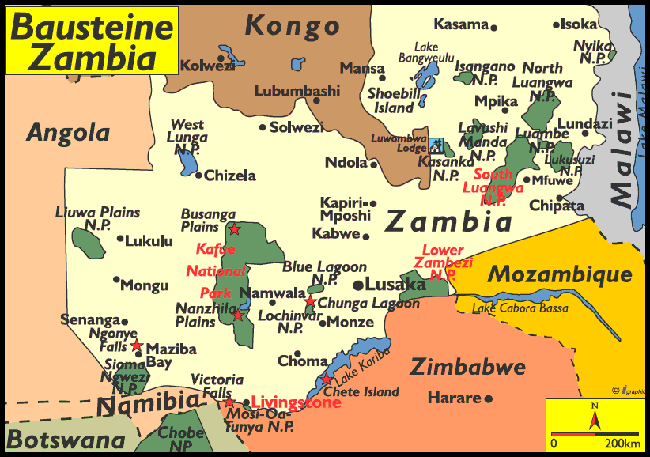 Ankunft frühmorgens in Lusaka. Abholung/Treffen am Flughafen und Fahrt