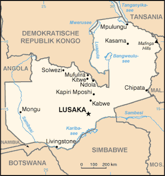 Zambias. (220 km Teerstraße, 80km Piste)