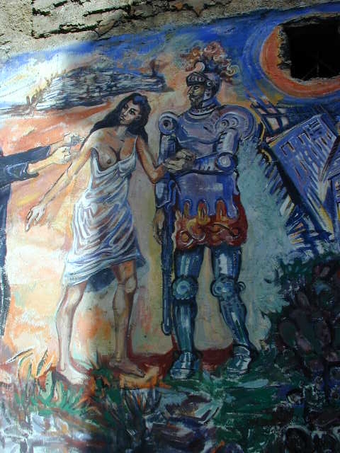 Murales Wandgemälde in Orgosolo Sardinien  Wallpictures Orgosolo Sardinia Ritter + Jungfrau