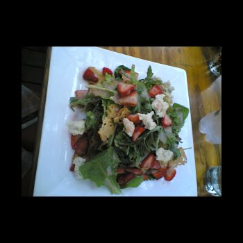lecker Salätche , Erdberen auf 5 verschiedenen Salaten mit haudünnen
