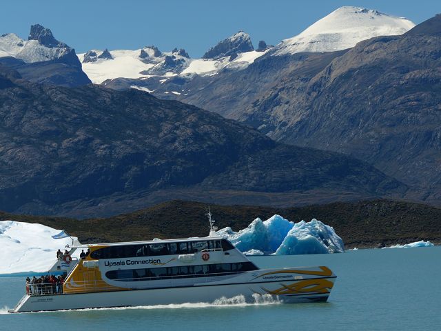 Fuchur der Eis´drache Lago Argentino Boot endmuräne kalben Gletscher Eisberge