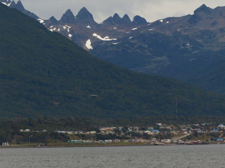 Ushuaia Cruisecenter jeden Tag kommt ein neuer Seacruiser + Abfahrt in die Antarktis 10 Tage Törn | Ushuaia Berge aus der Luft Beagle Kanal |