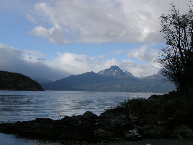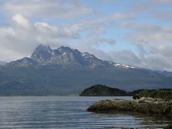 Die Grenze nac Chilre läuft mitten urch die bahia Lapataia | Grenzgebiet zu Chile Berge in Chile Mount Darwin |
