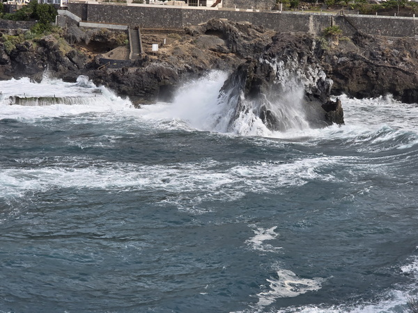 | Charco de Isla Cangrejo sehr hohe Welllen | Charco de Isla Cangrejo Wellenwarung Meerschläge bis 9 m |