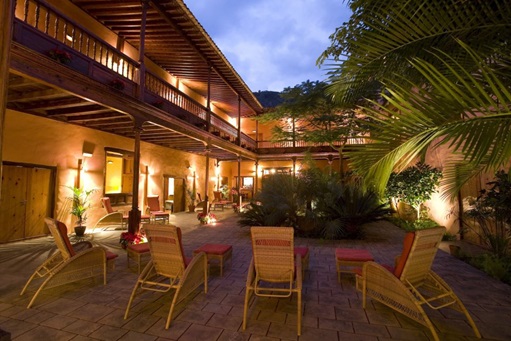 | Garachico Hotel La Quinta Roja Livvo Senses Collection Zenhotel Gebäude aus dem 16 ten Jahrhundert mit Dachterasse + Patio Innenhof | Garachico Patio Innenhof |